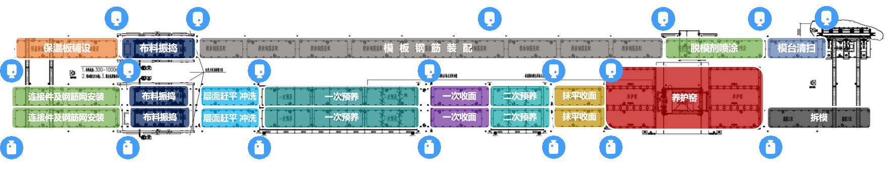 1. 艾灵Local 5G+高清摄像头+工业视觉AI(OCR检测算法),实时监测各模台所在的工序位置以及各工序作业时长;