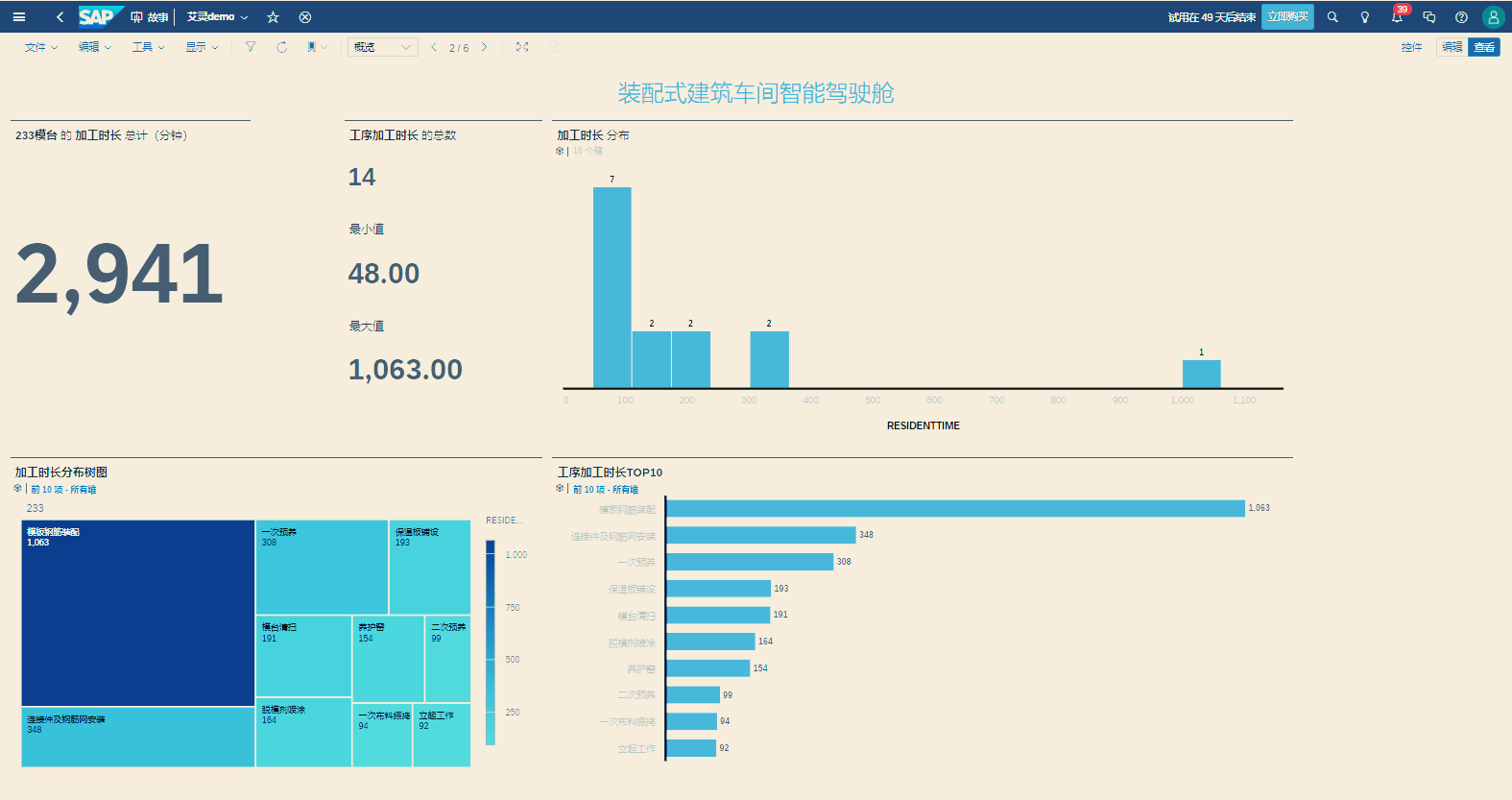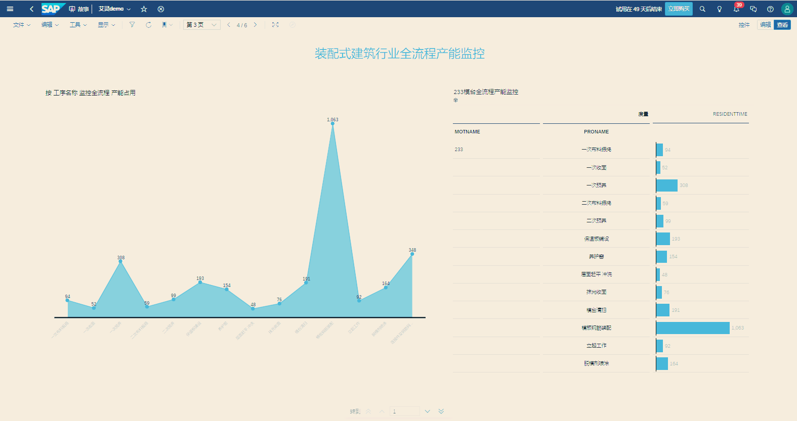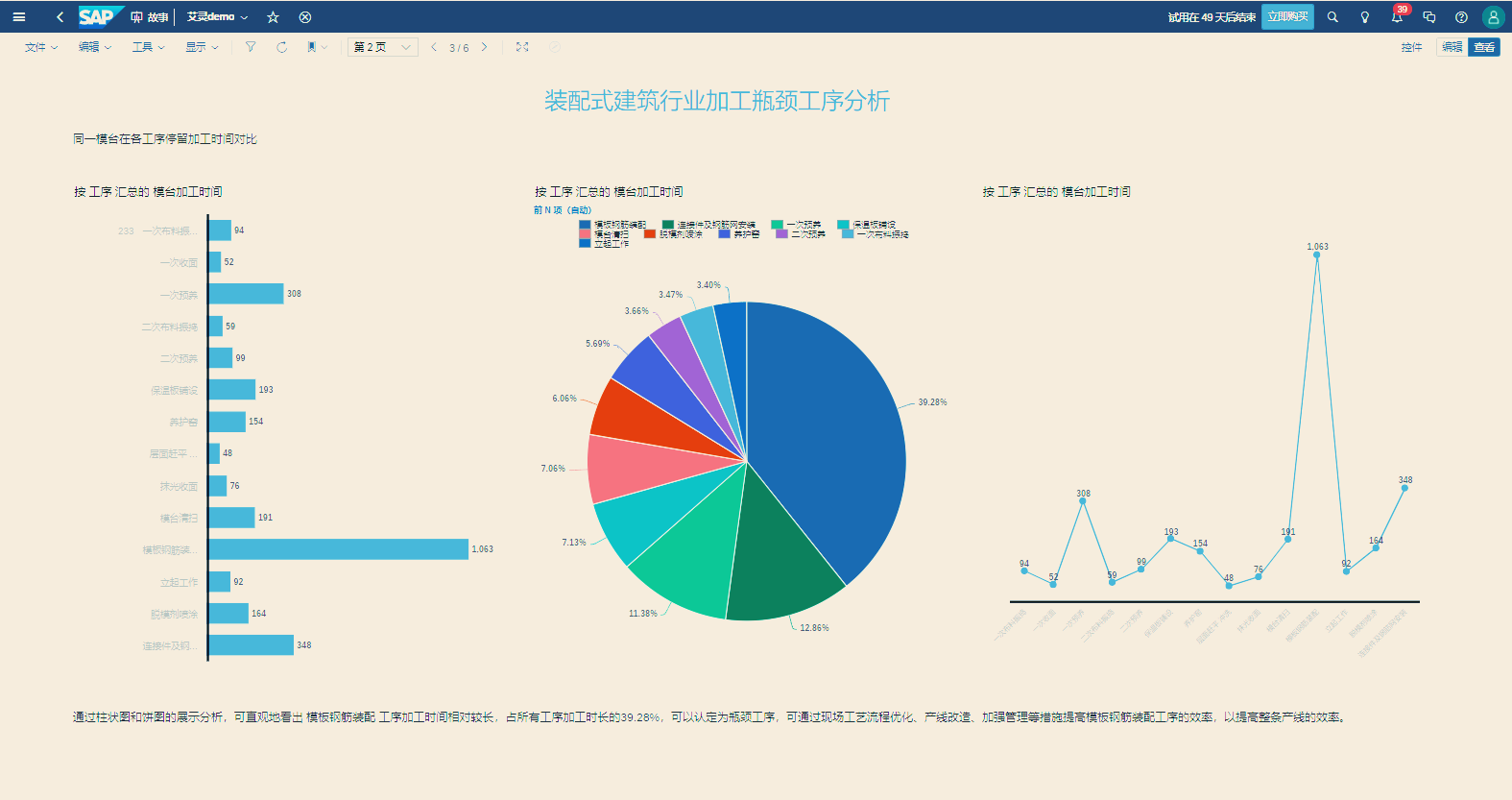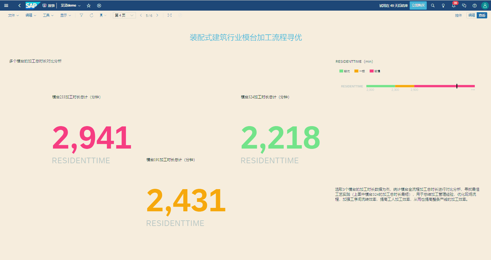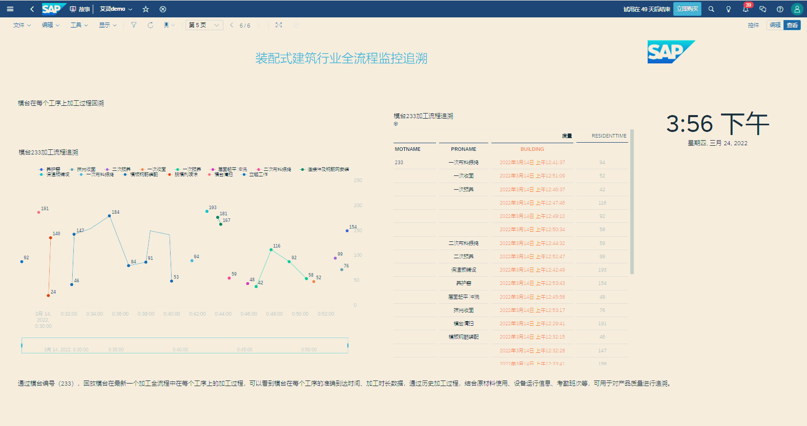 方案实施后,通过对所有模台的全面监测,在SAC云端界面直观展现每个工艺的作业情况,管理者能够实时掌握整个产线的生产态势。利用云端分析工具,可计算各个工艺的平均作业时长,分析追溯模台作业异常的原因,助力工艺优化进而提升产能效率,为工厂精益生产管理提供数据支撑。