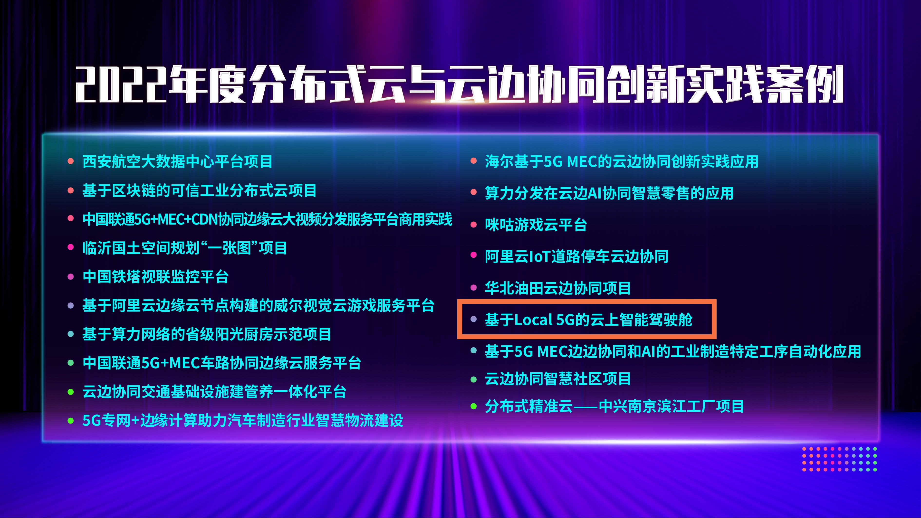 在2022云边协同大会上,中国信通院正式发布了2022年度分布式云与云边协同创新实践案例结果。艾灵携手SAP为装配式建筑行业量身打造的“基于Local 5G的云上智能驾驶舱”成功入选。