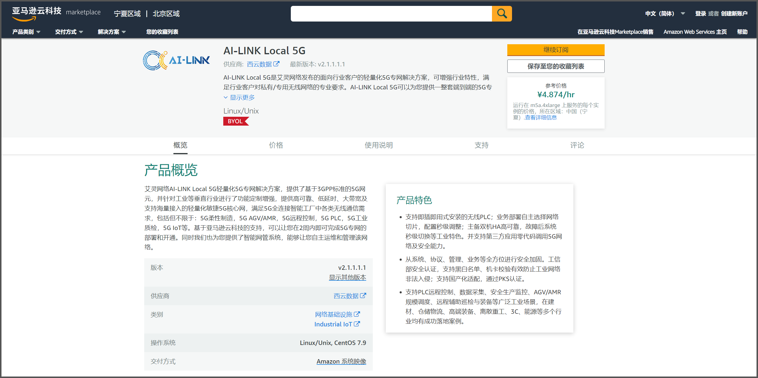 艾灵云原生Local 5G现已正式上线亚马逊云科技Marketplace,用户可以访问Marketplace,轻松便捷地完成5G部署,实现业务增长。